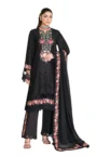 The set is completed with a beautiful embroidered chiffon dupatta, adding a soft and graceful touch.