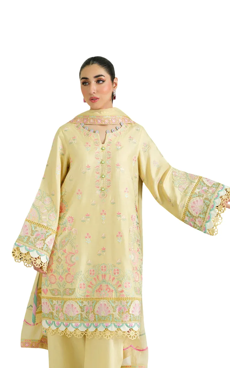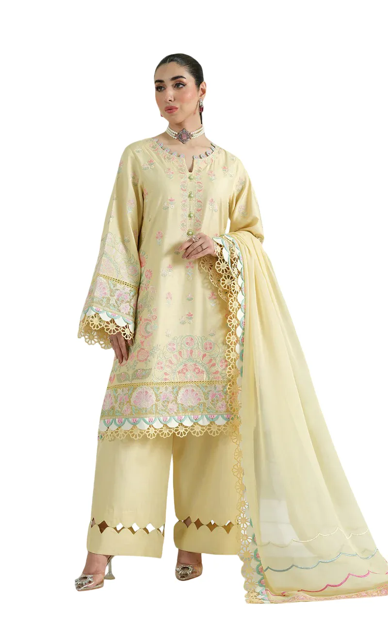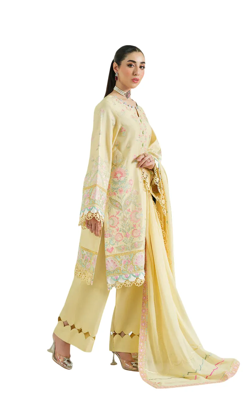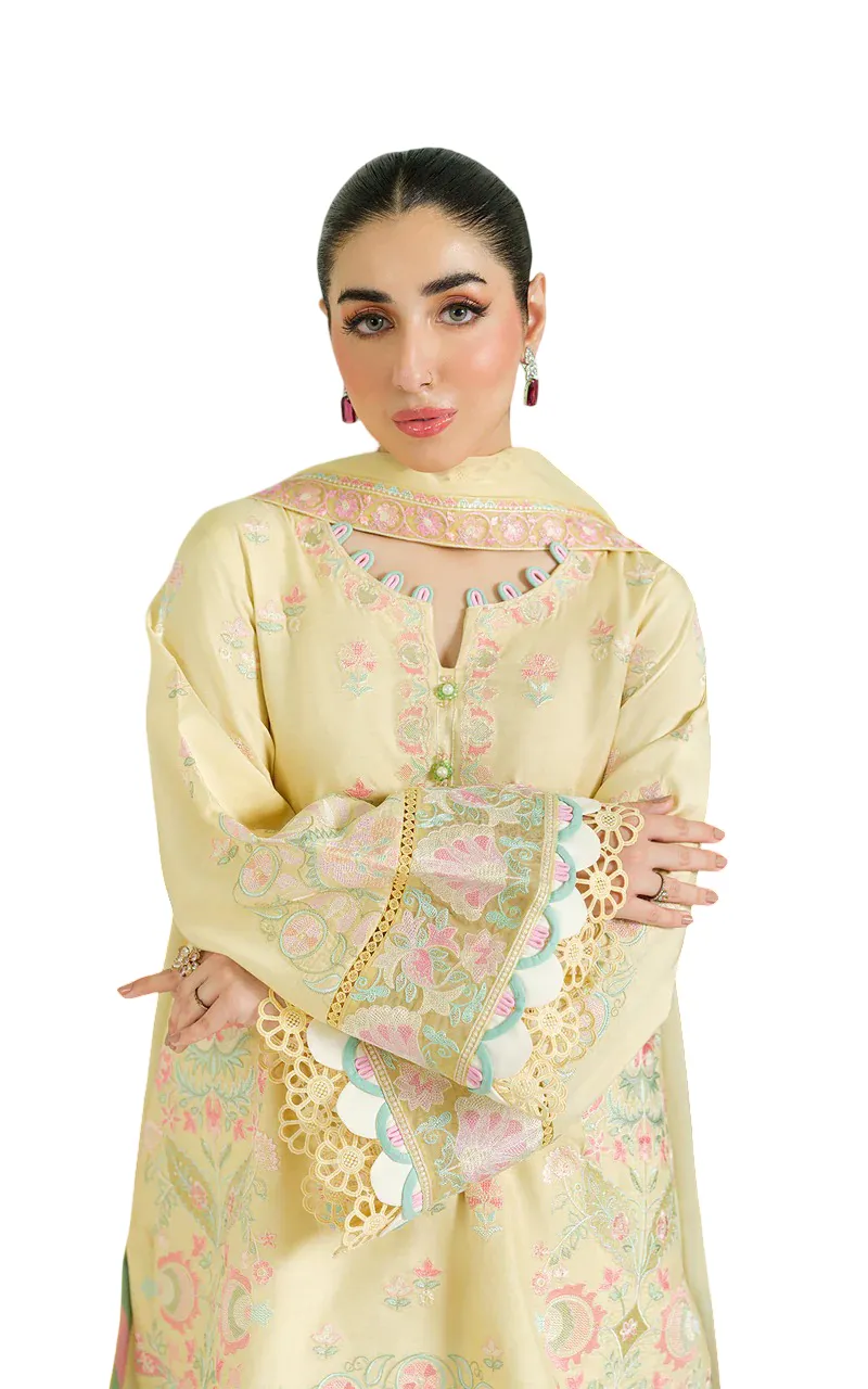 Finished with a beautifully embroidered chiffon dupatta, adding a light and airy touch to the overall look.